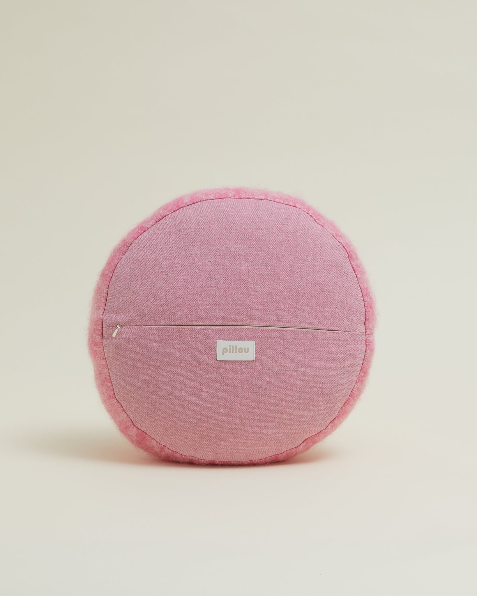 Round soft Mohair pillow in Pink colour.